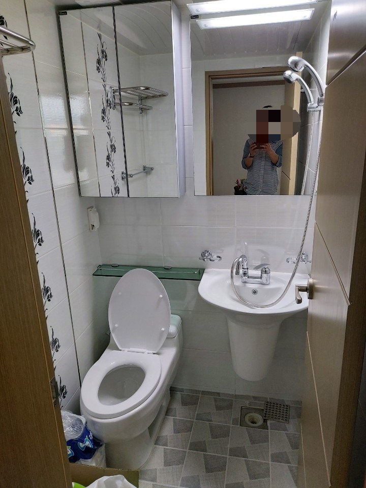 화장실 청소 후의 사진을 전체적으로 좀 보고 계시고요 .