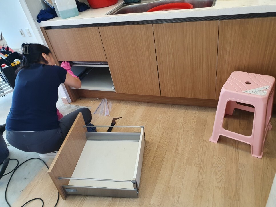 서랍장 모두탈거 후 청소.무조건 찌든때만을 지우기위한 독한 약품의
