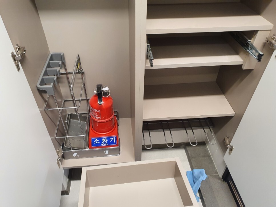 모조리 청소를 진행합니다.탈거 가능한 수납장은 전부 탈거하여,