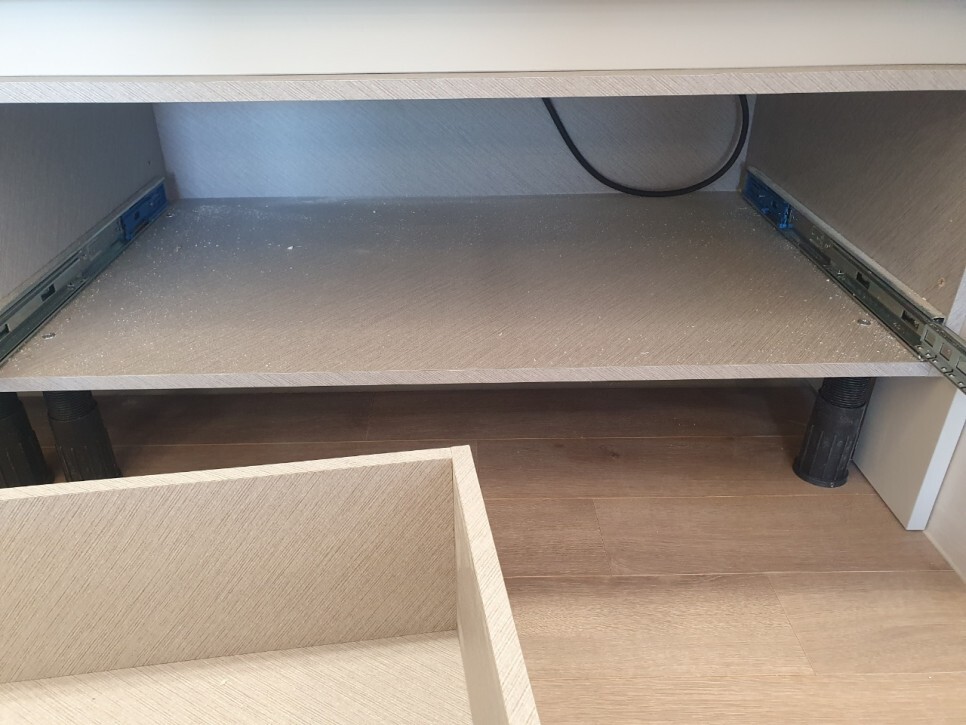 하부장에는 많은 폐기물과 분진,시공먼지가 쌓여있습니다.