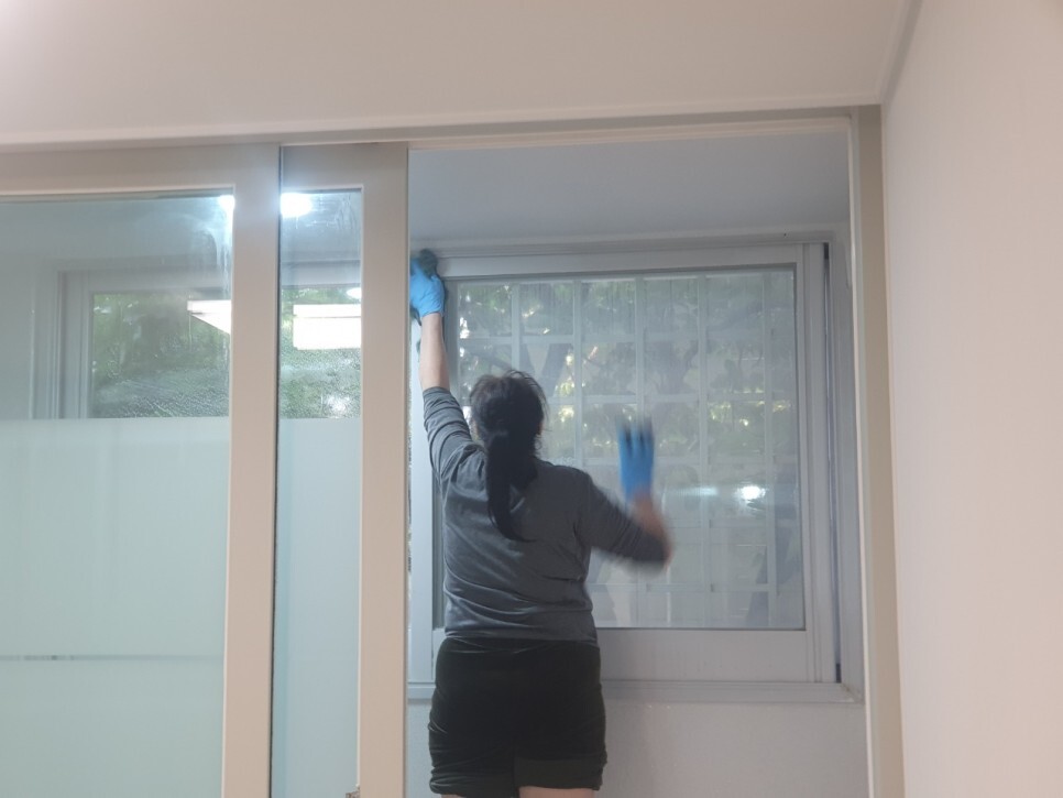 창틀 문틀 방충망의 청소가 진행됩니다.