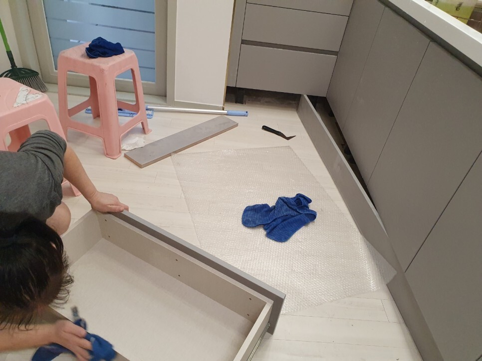 수납공간,싱크대 걸레받이 분리 후