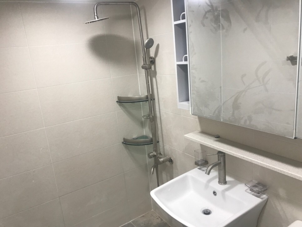 공간과 샤워호스, 하수구 등 스텐으로 만들어진
