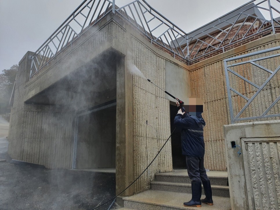 전문 장비와 전용 세제, 고압세척기를 사용하여
