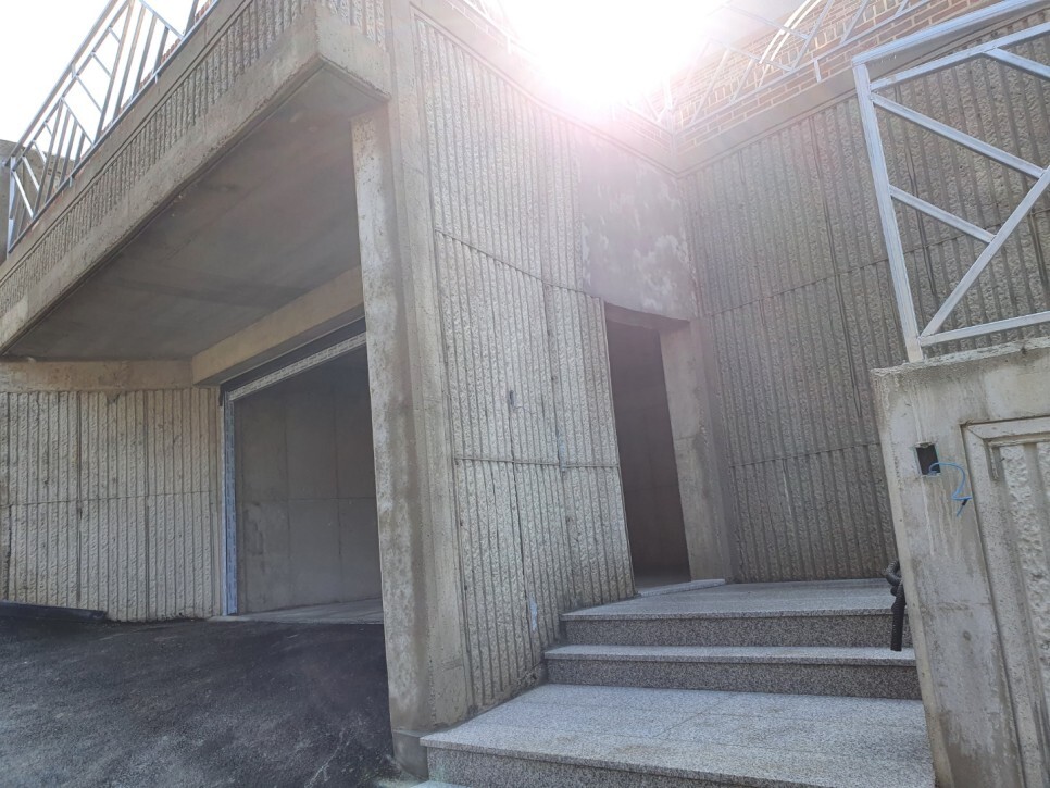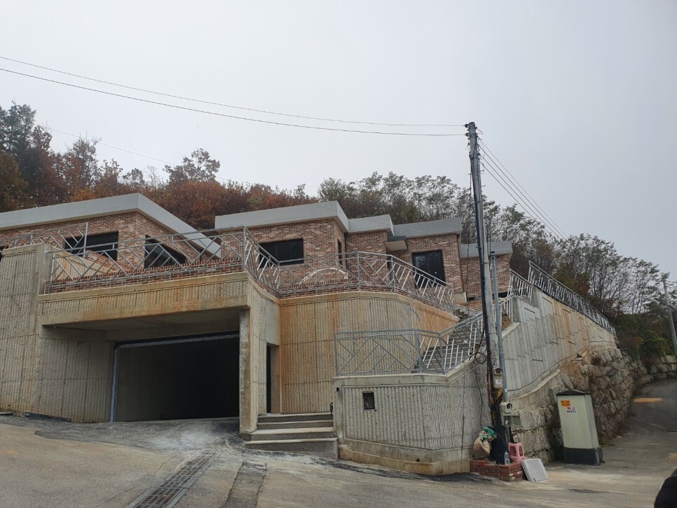건축중 여름에 비가와 황토흙이 흘러 벽에