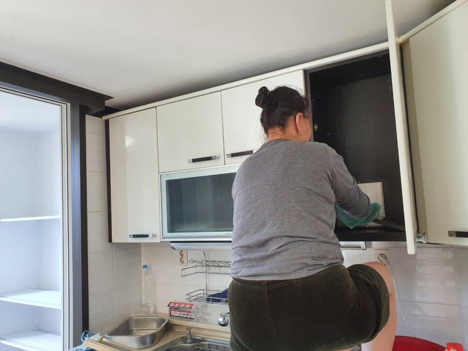 모든 수납장도 탈거해 청소가 진행됩니다.
