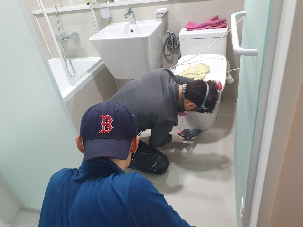 화장실등은 바닥 줄눈을 넣기전에