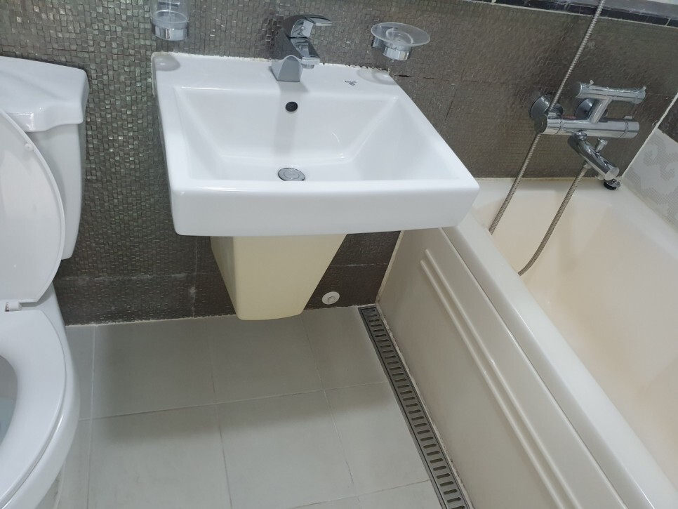 타일 바닥을 비롯한 배수구까지 완벽하게 클리어!
