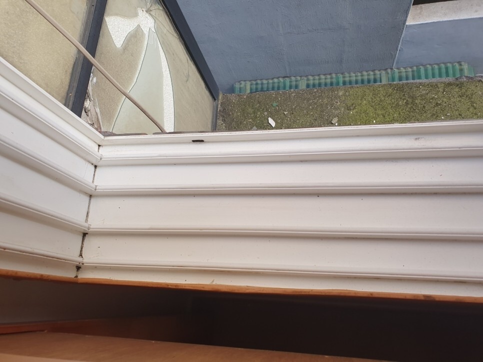 겨울 내내 방한용 뽁뽁이를 붙였던자리,