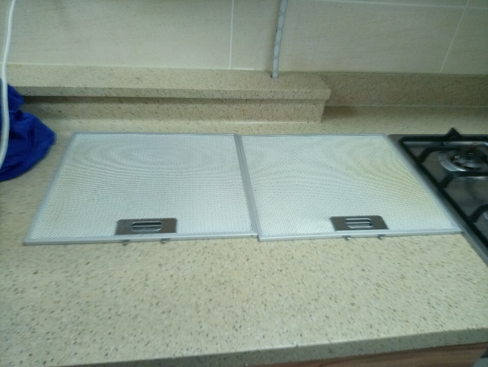 기름이 가득한 후드망도 탈거 후