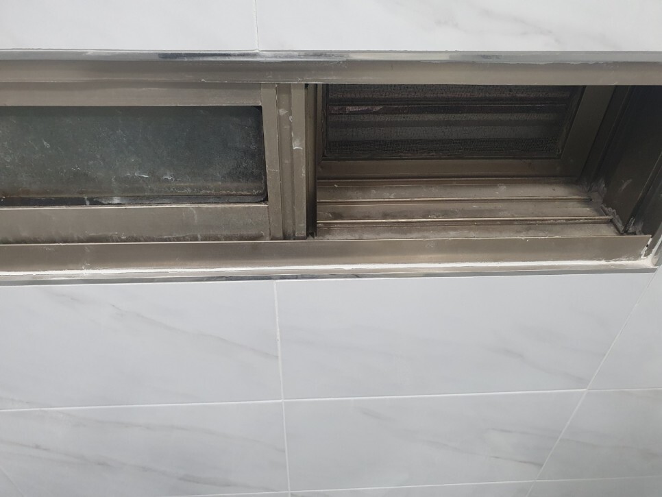 창틀의 오염도는 원래의 묵은때와 부분공사로