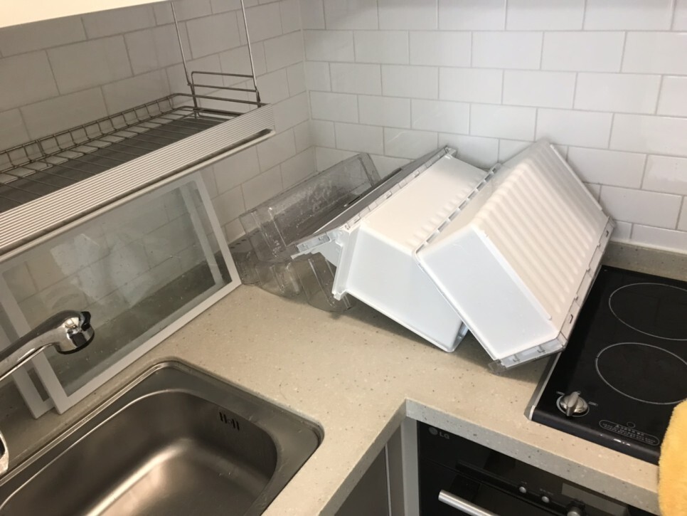 선반과 수납함들을 탈거하고 난 뒤 수납안쪽의