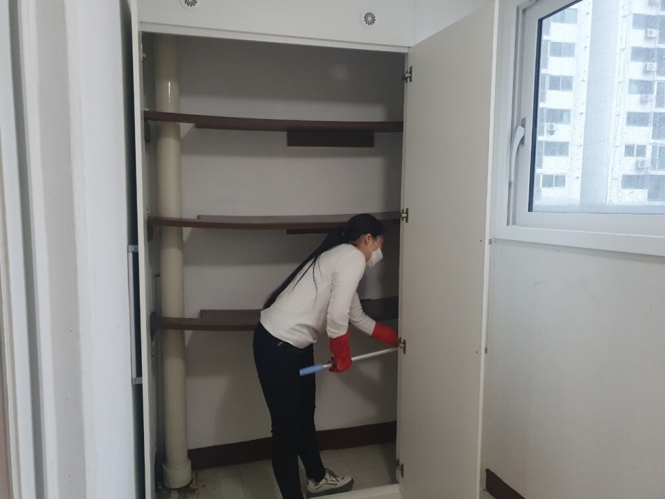 가능한 수납장은 모두 탈거하여 청소를 진행합니다.