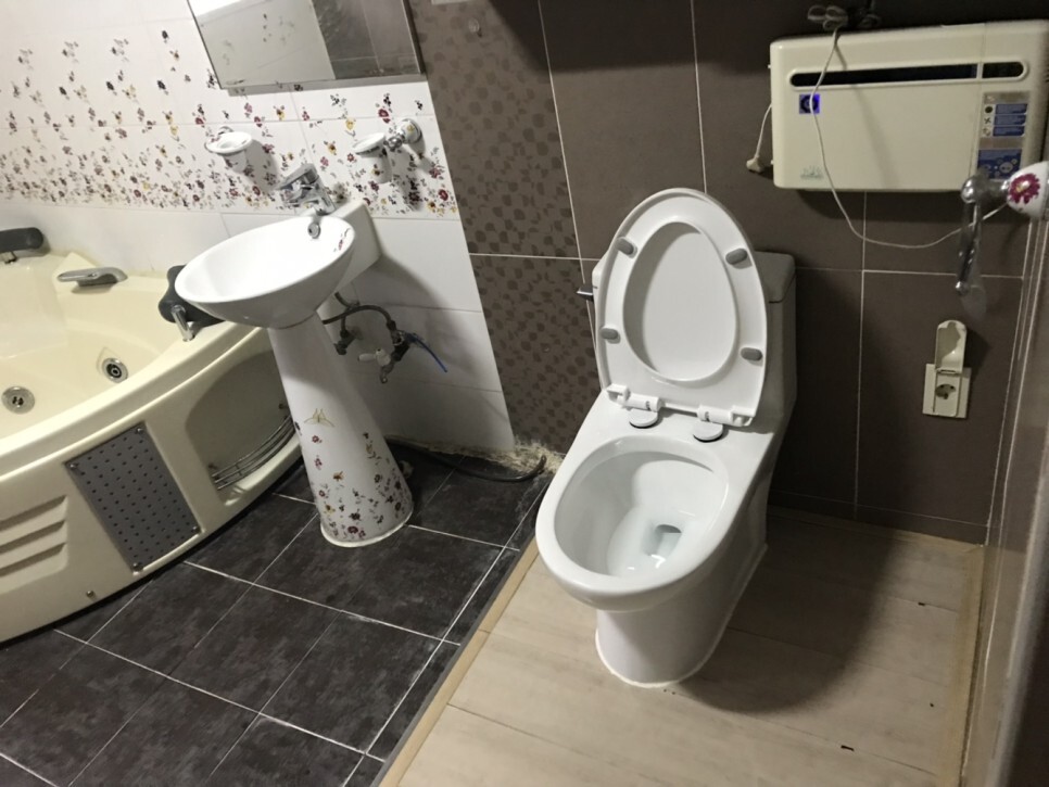 세면대와 스테인리스 수도꼭지에 스크래치가