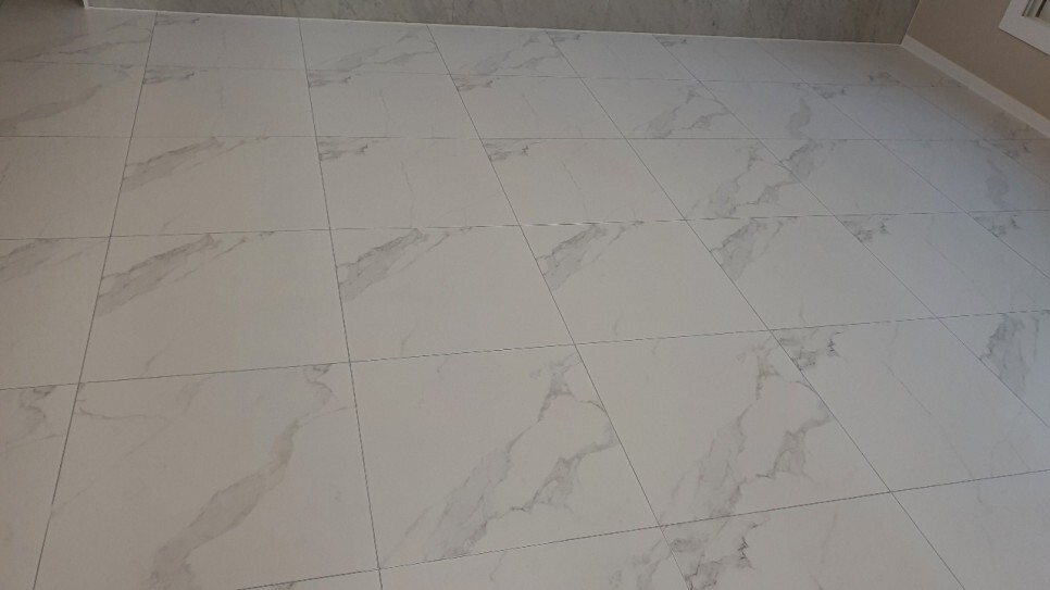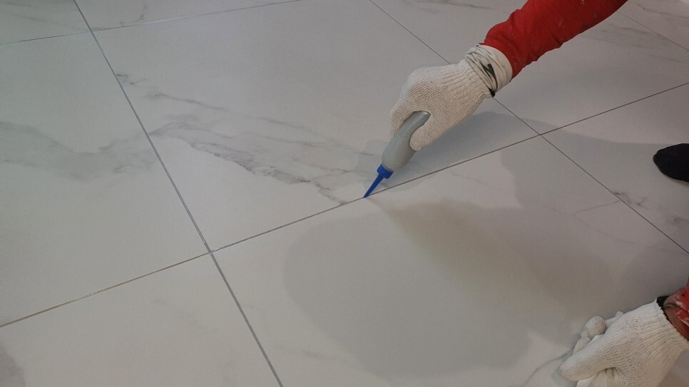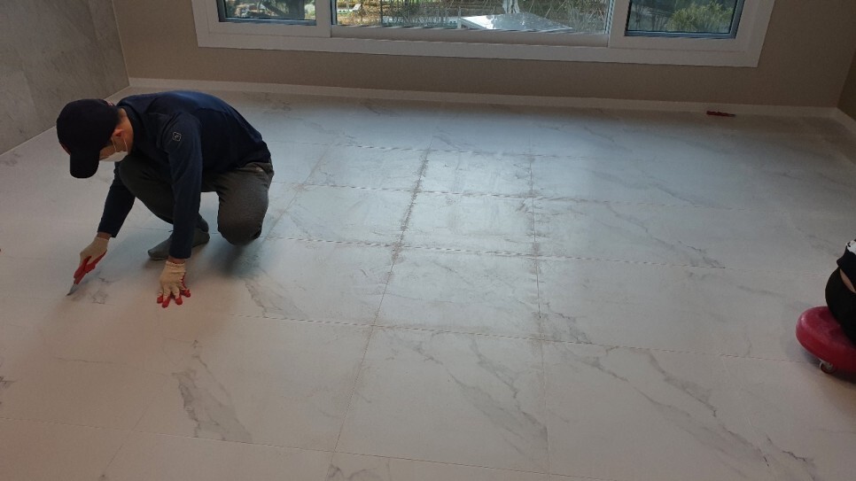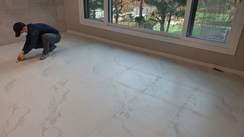 거실 폴리싱타일바닥 줄눈시공 세련된