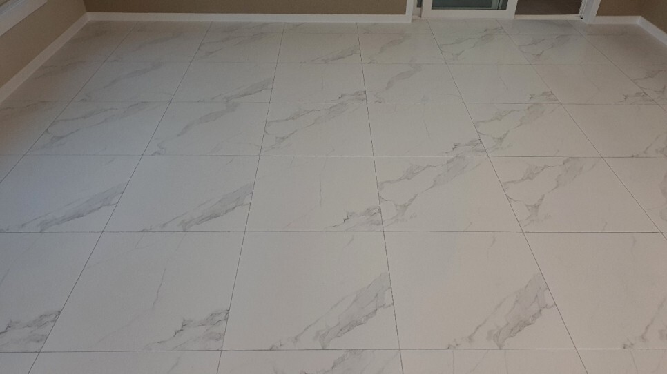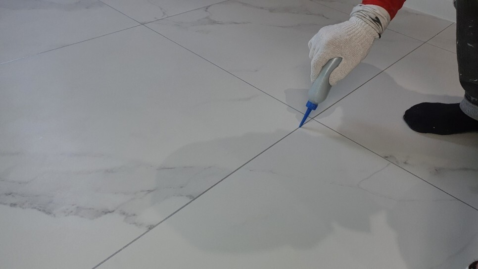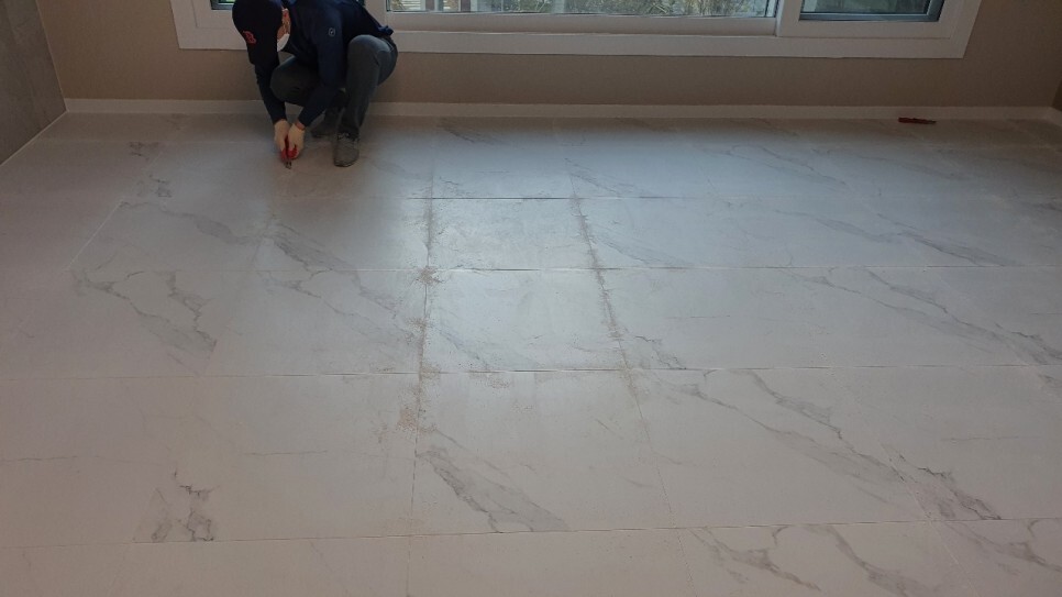 거실 폴리싱타일바닥 줄눈시공 세련된