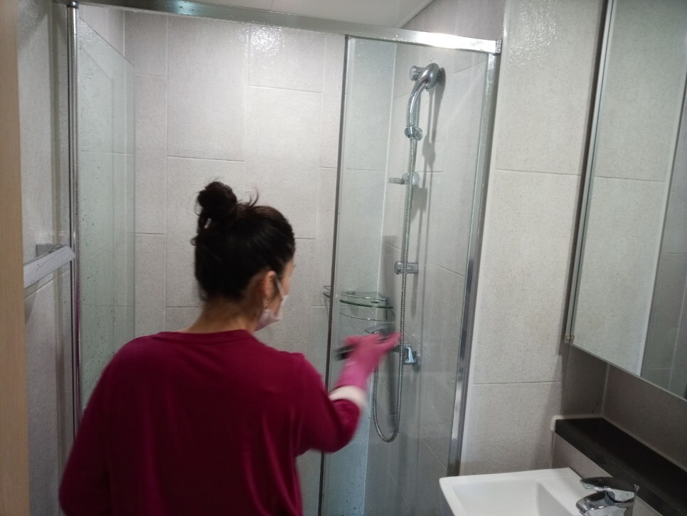 바닥까지 빠짐없이 손보고 물기를 깔끔하게 닦아냅니다.
