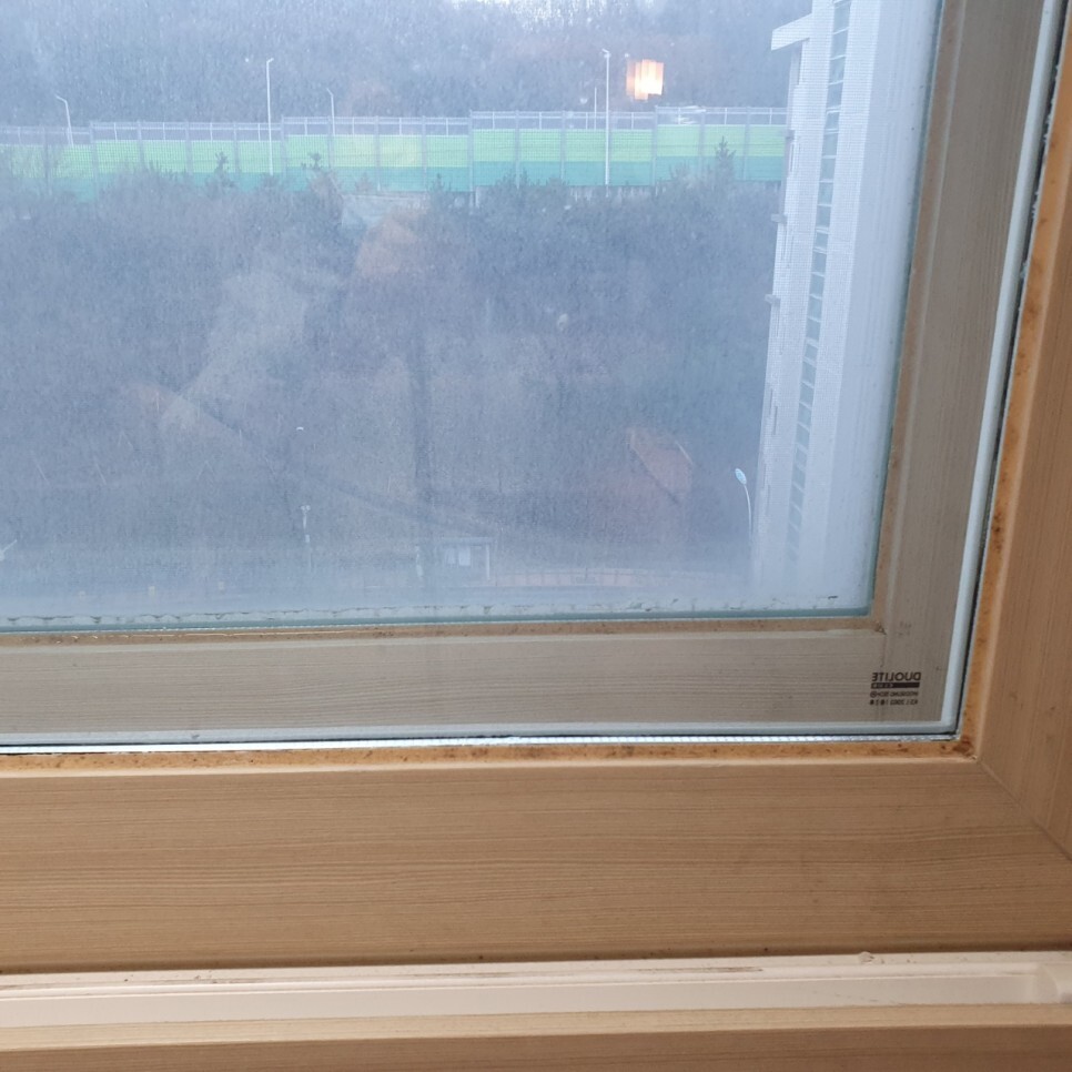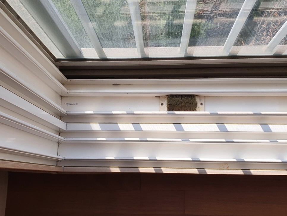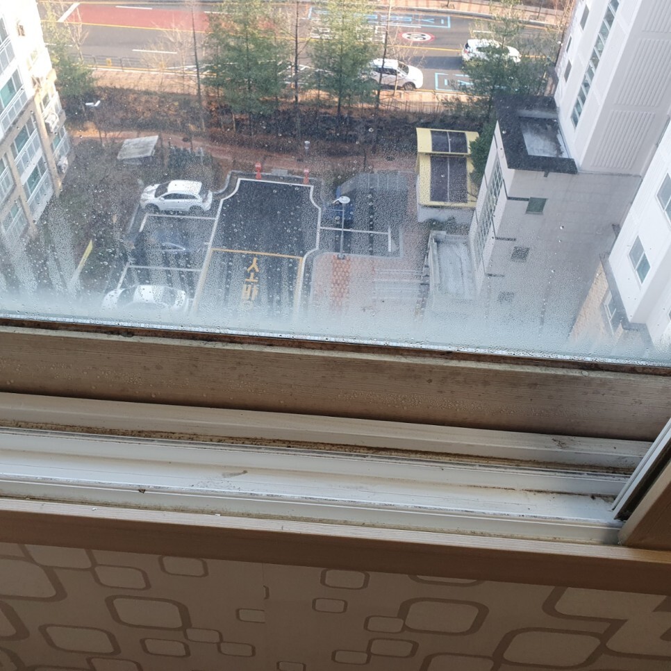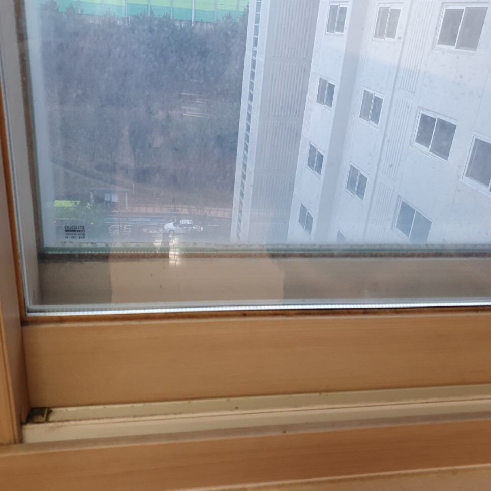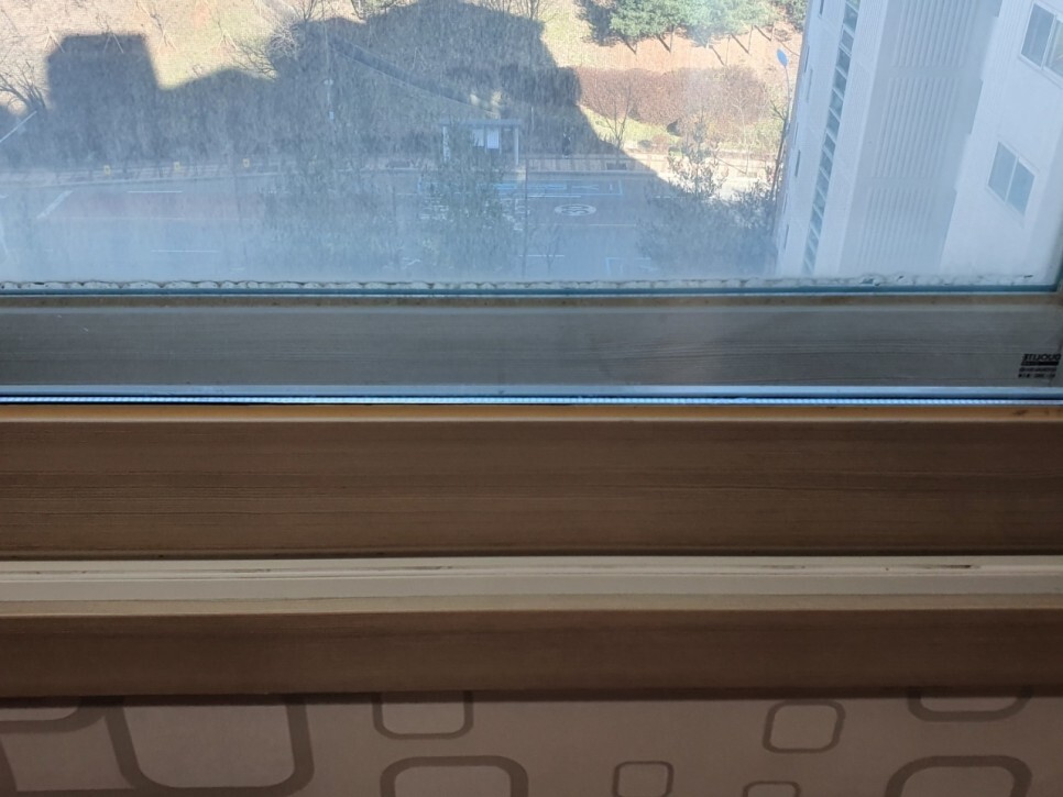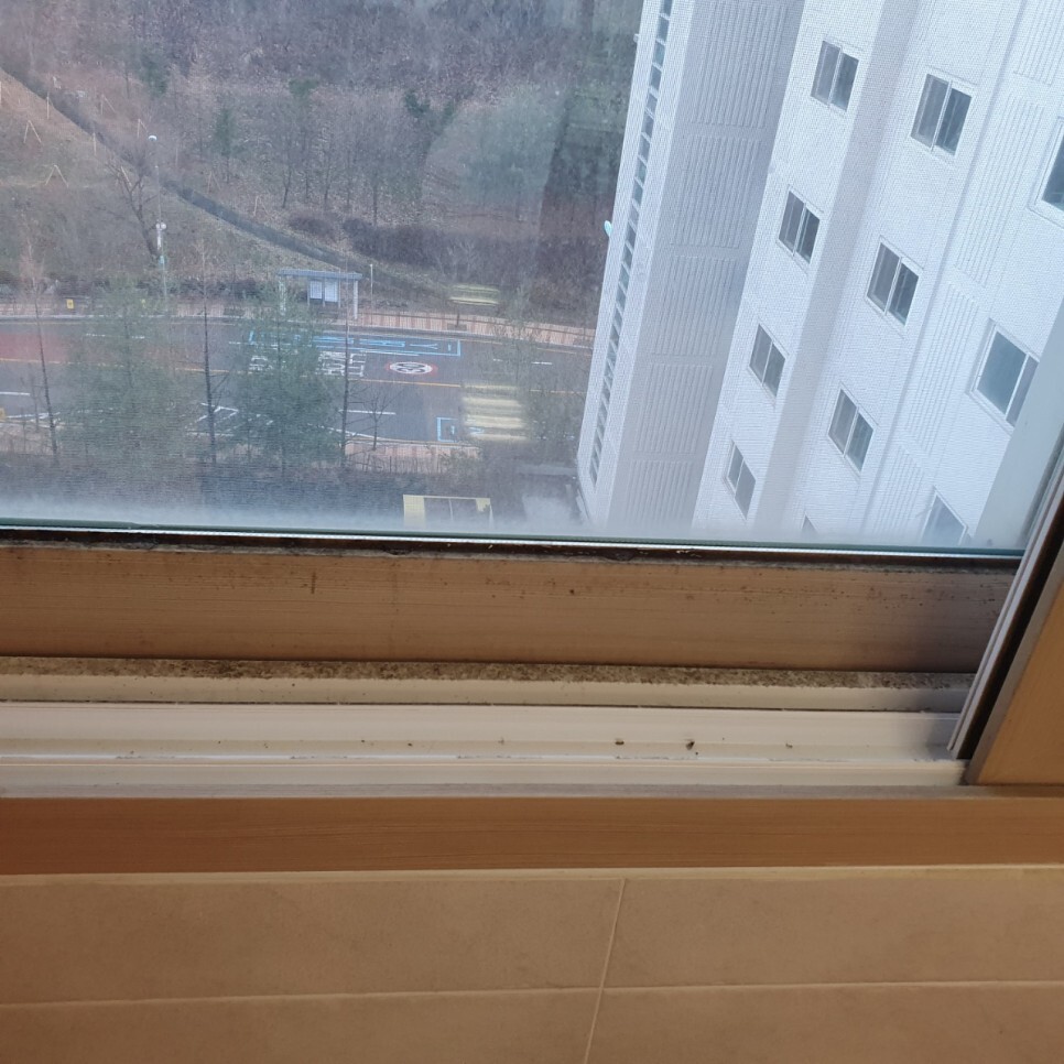 유리창에 보온재와 이물질 제거 본격 작업 전