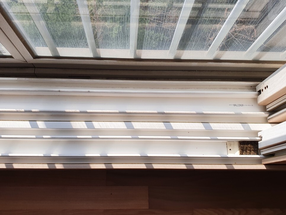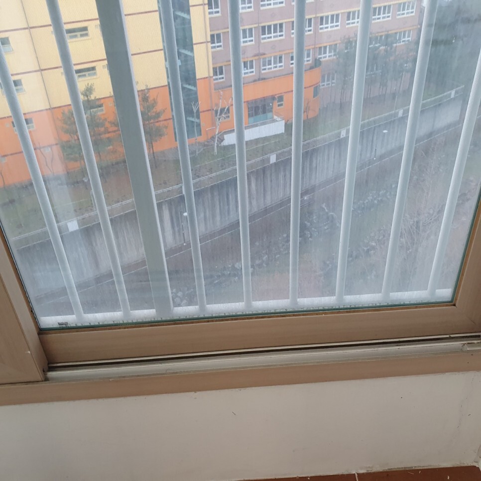 유리창에 보온재와 이물질 제거 본격 작업 전