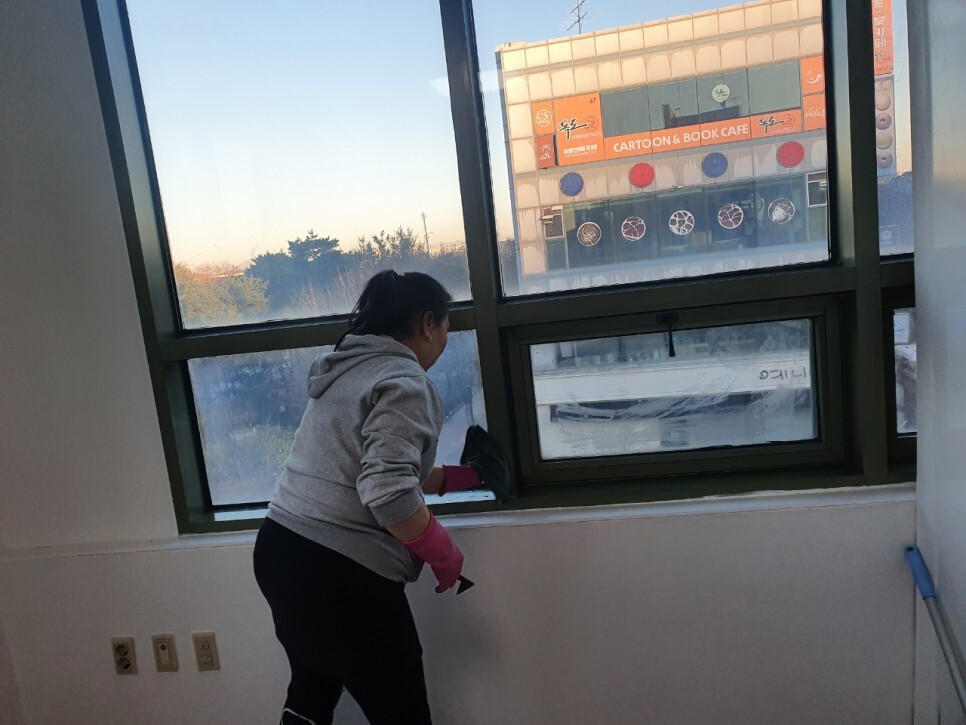 유리창청소는 손이 많이갑니다.