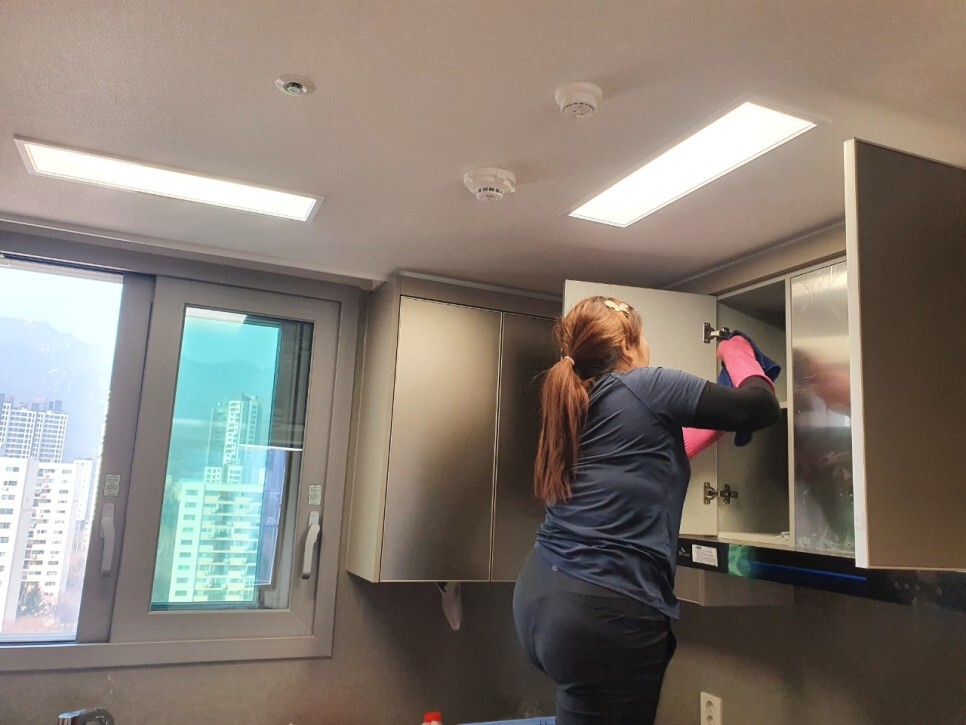 주방에는 많은 분진과 시공먼지들이 쌓여있고