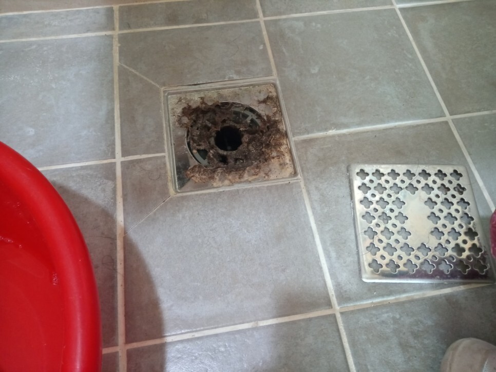 하수구, 배수구는 모두 탈거 후 머리카락과