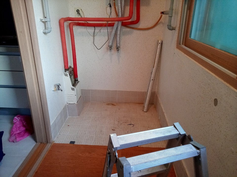 바닥과 벽면에 묻은 시멘트 가루들은 틈새를