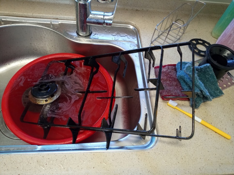 세제물에 한동안담가 불려서 깨끗하게