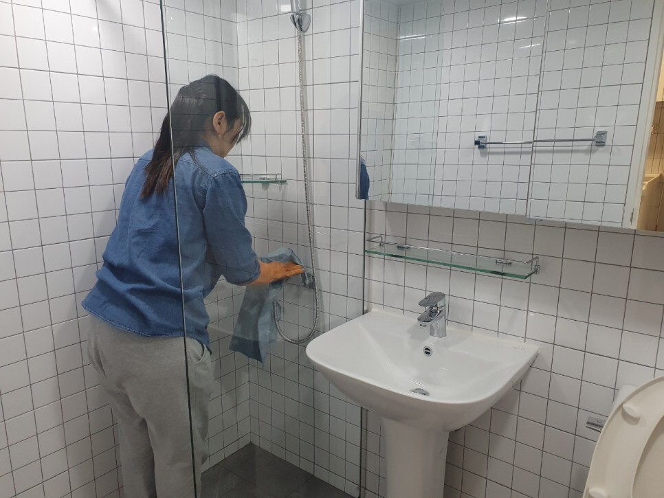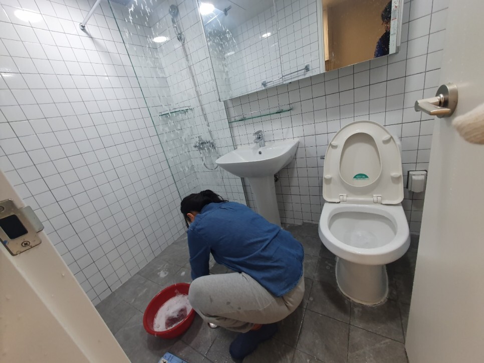 화장실은 전용세제를 사용하여 물청소를 진행합니다.