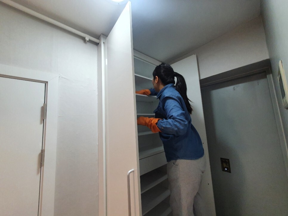 가능한 수납장은 모두 탈거하여 작업을 진행합니다.