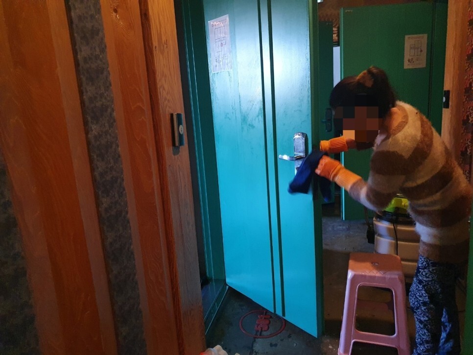 천정과 벽면도 먼지제거를 빠지지않게 닦아냅니다.