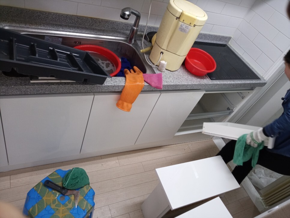 주방 수납장을 천장부터 바닥 모퉁이까지 모조리