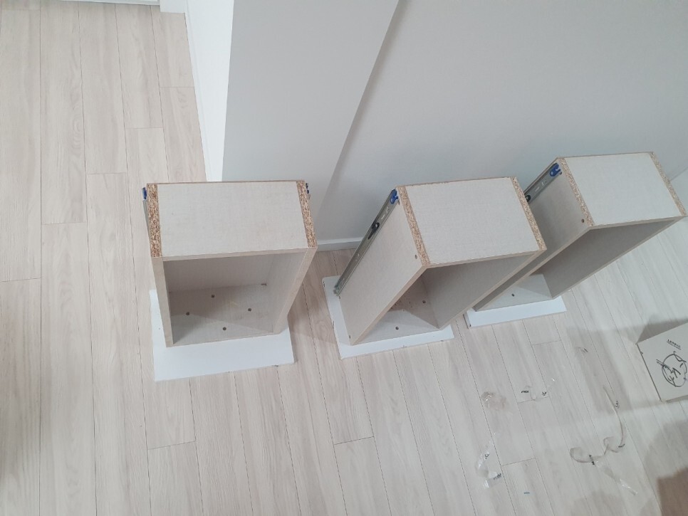 새로 시공한 수납장은 분진과, 먼지, 톱밥이
