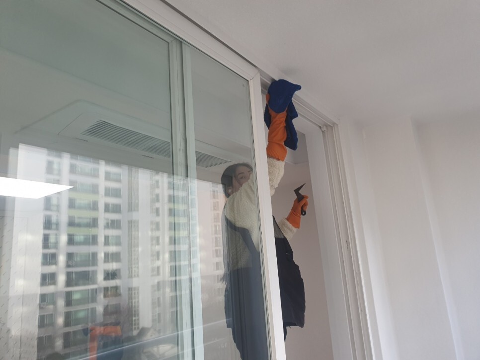 창틀과 유리창 내부에 시공분진을 깔끔하게청소합니다.