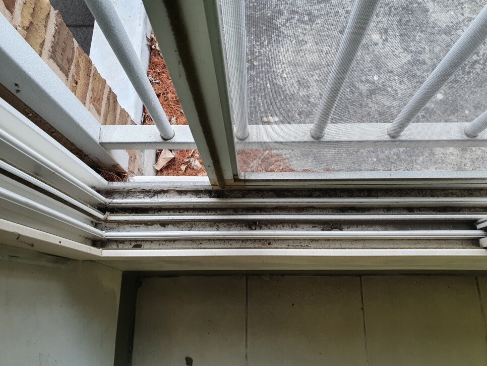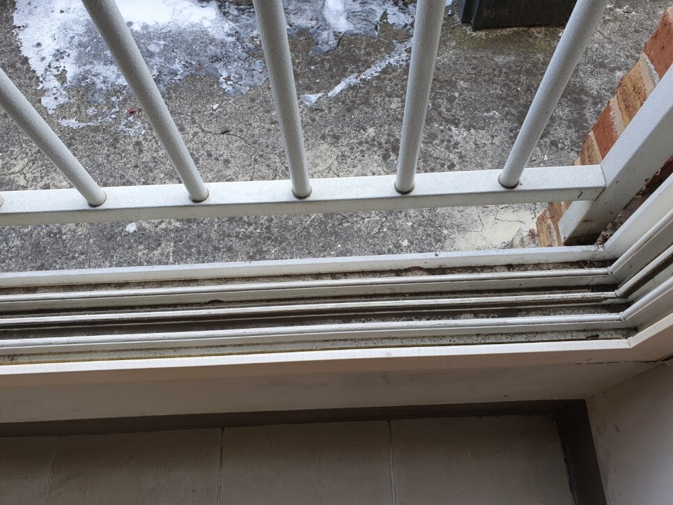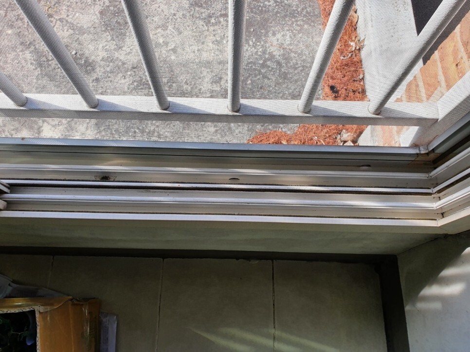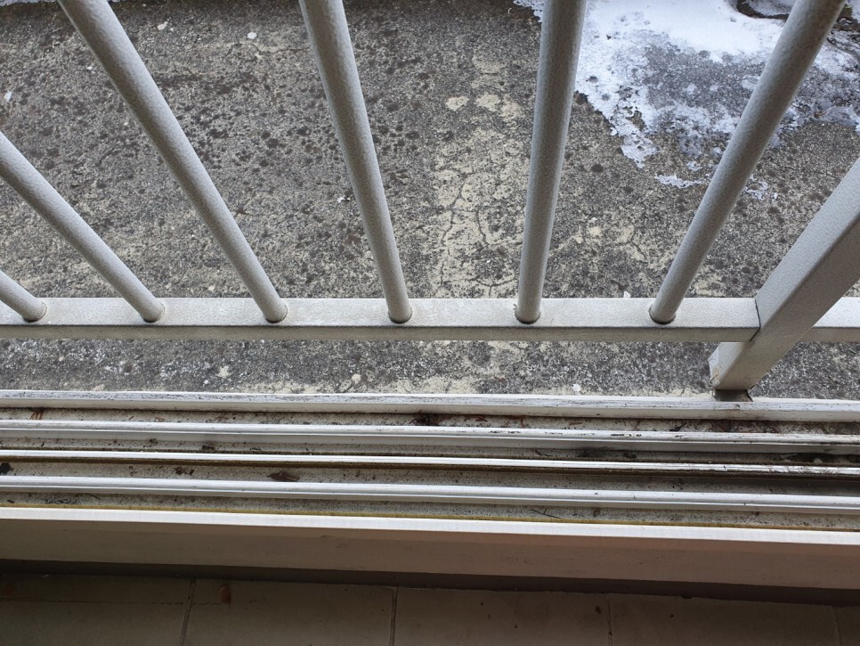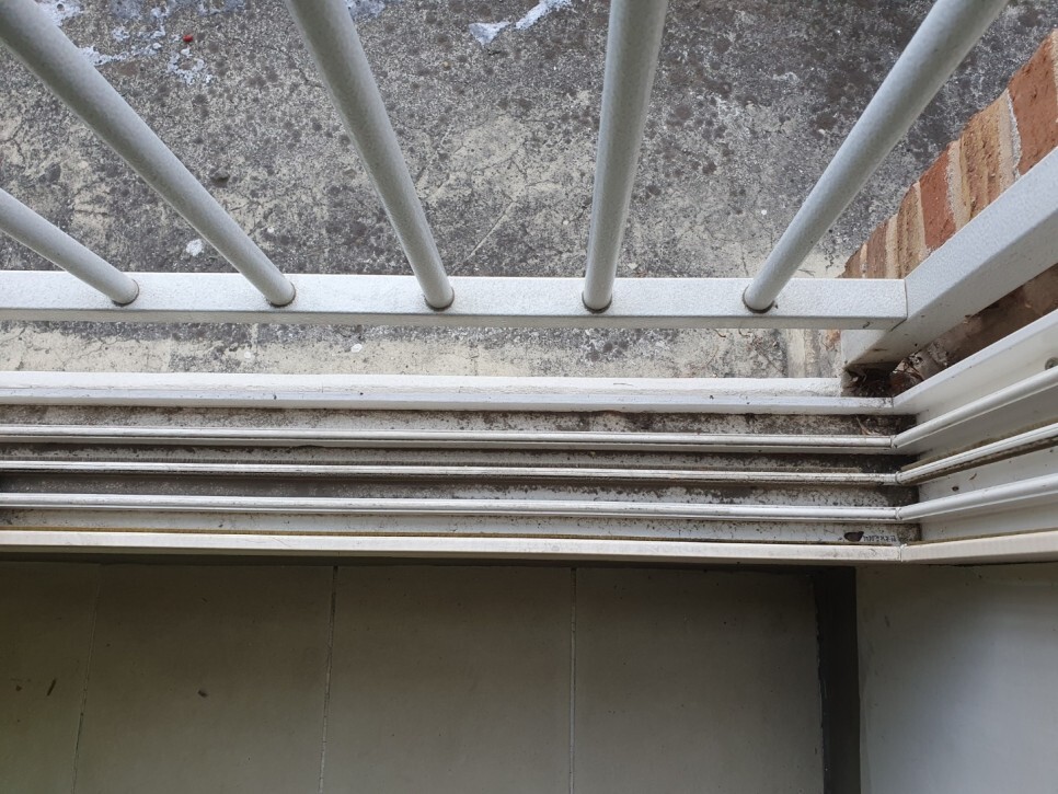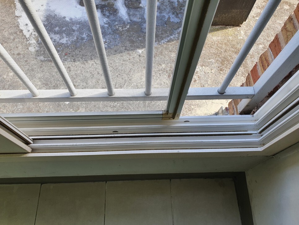 창틀에 흙먼지와 이물질이 켜켜히 쌓여있네요.