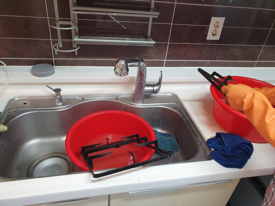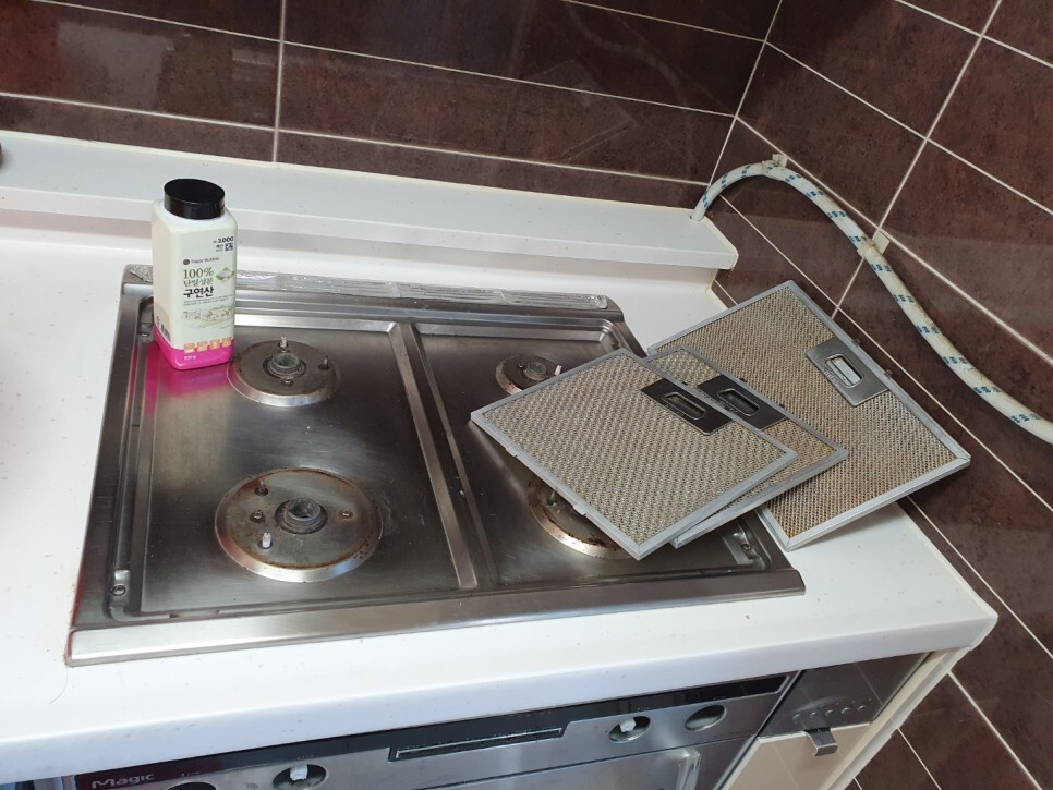 가스레인지 등등 기름 찌꺼기가 남아있어