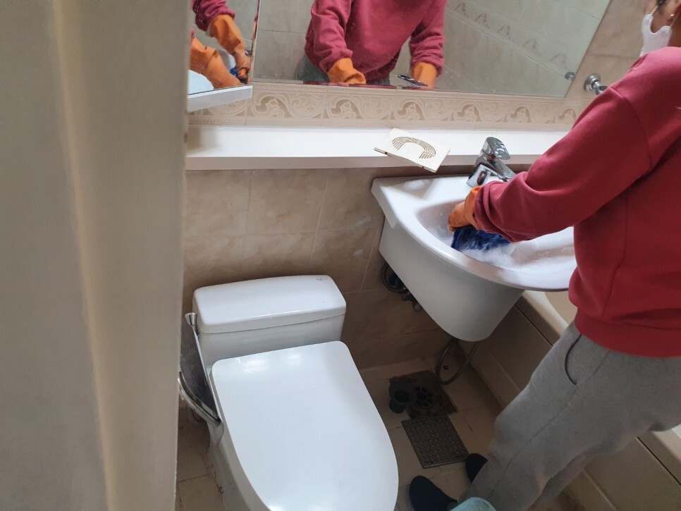 화장실 청소시에 곰팡이가 잘 스며든 세면대와