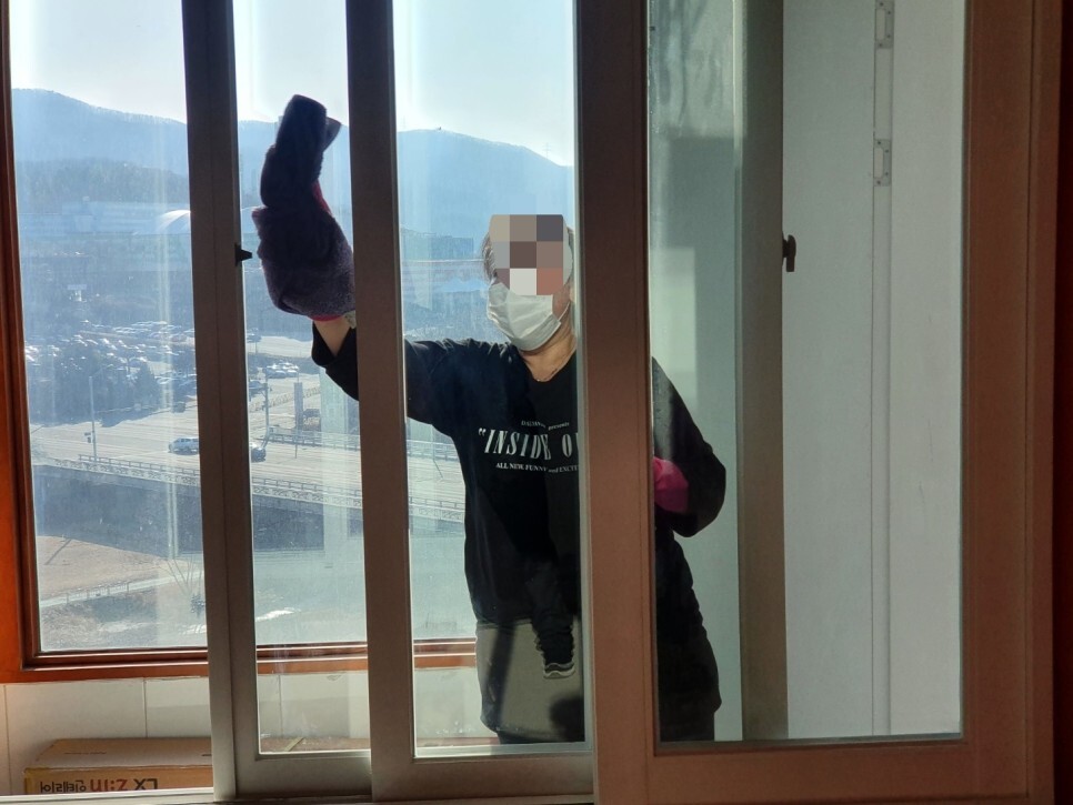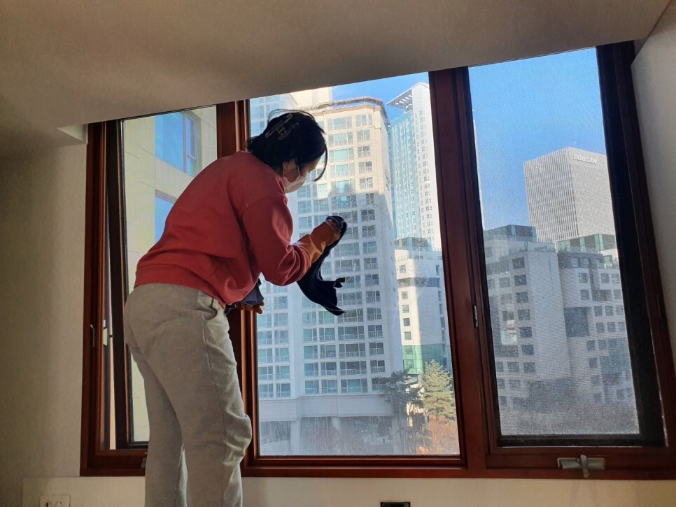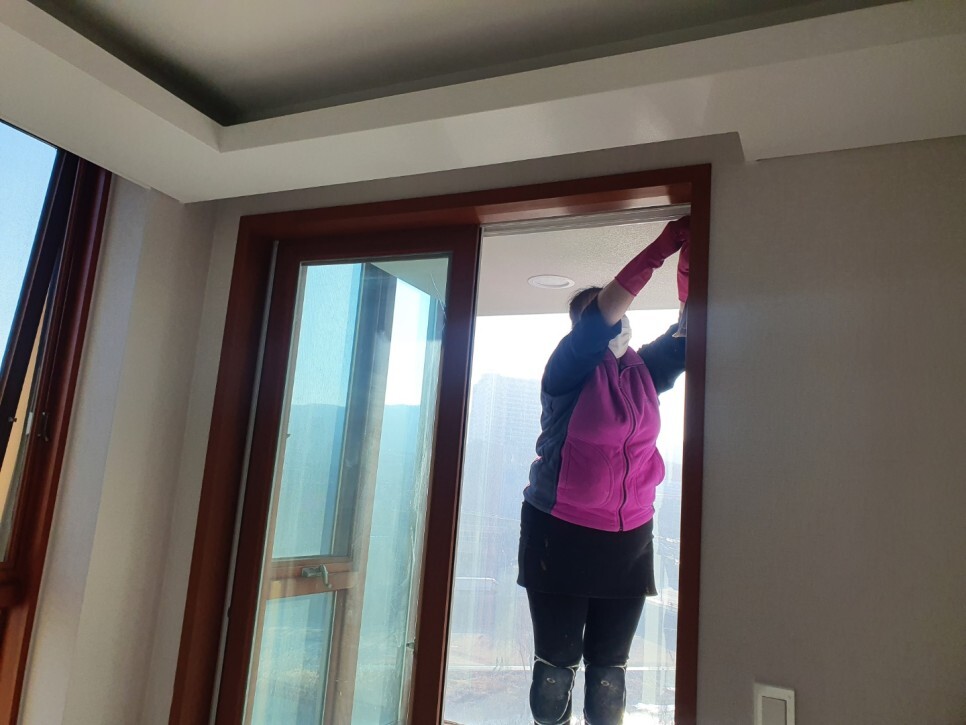 바닥과 창틀공사를 해서 분진이 곳곳에 켜켜히
