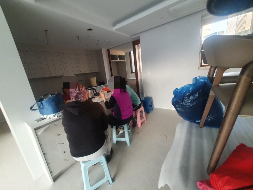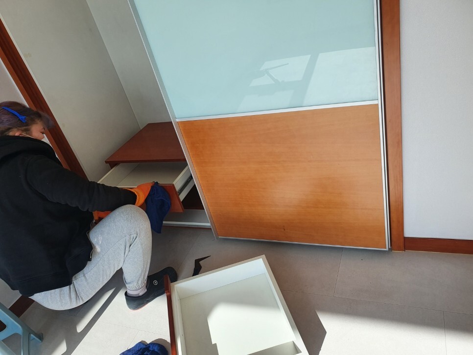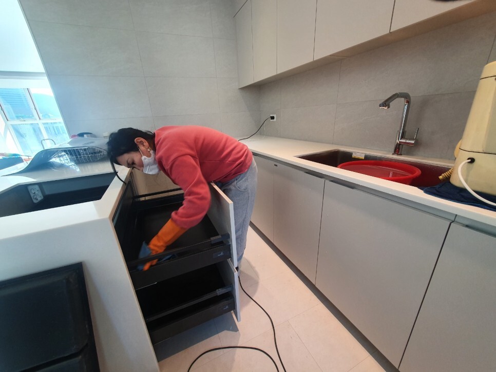 씽크대교체 공사로 톱밥가루가 많았어요.