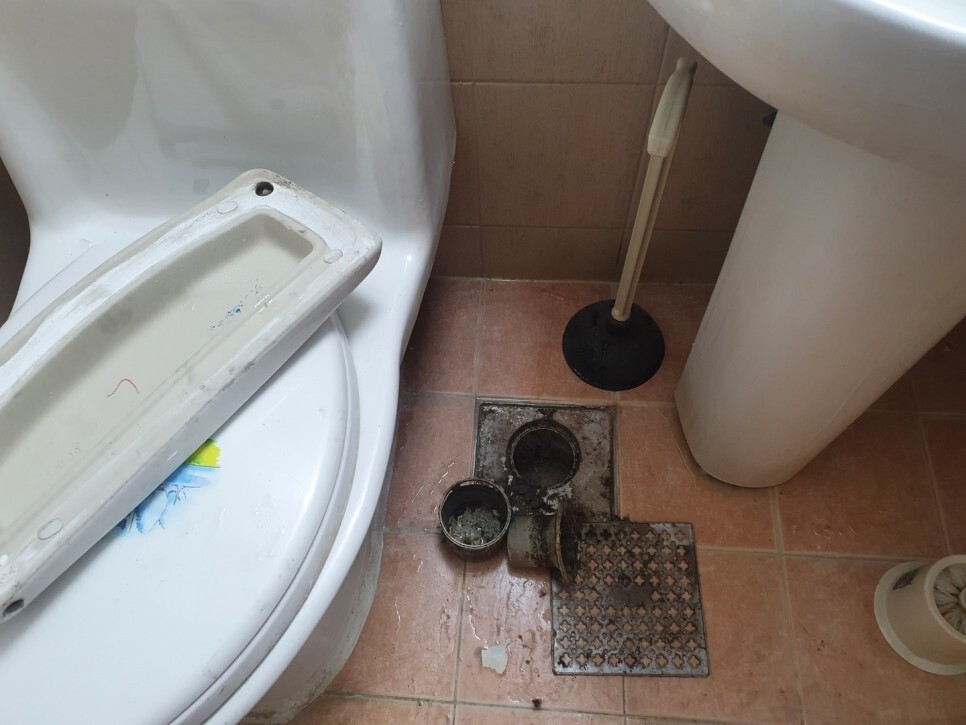 환풍기, 배수구는 탈거 후 배수구트랩의