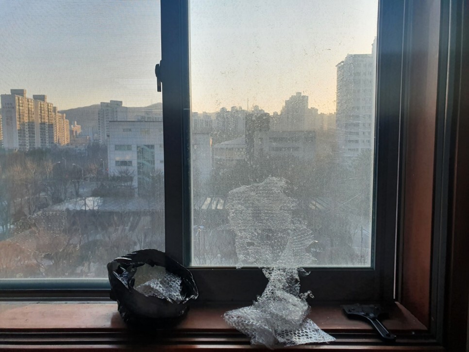 창틀은 오래돼 칠이 벗겨지고 오염물질이 가득ㅠㅠ