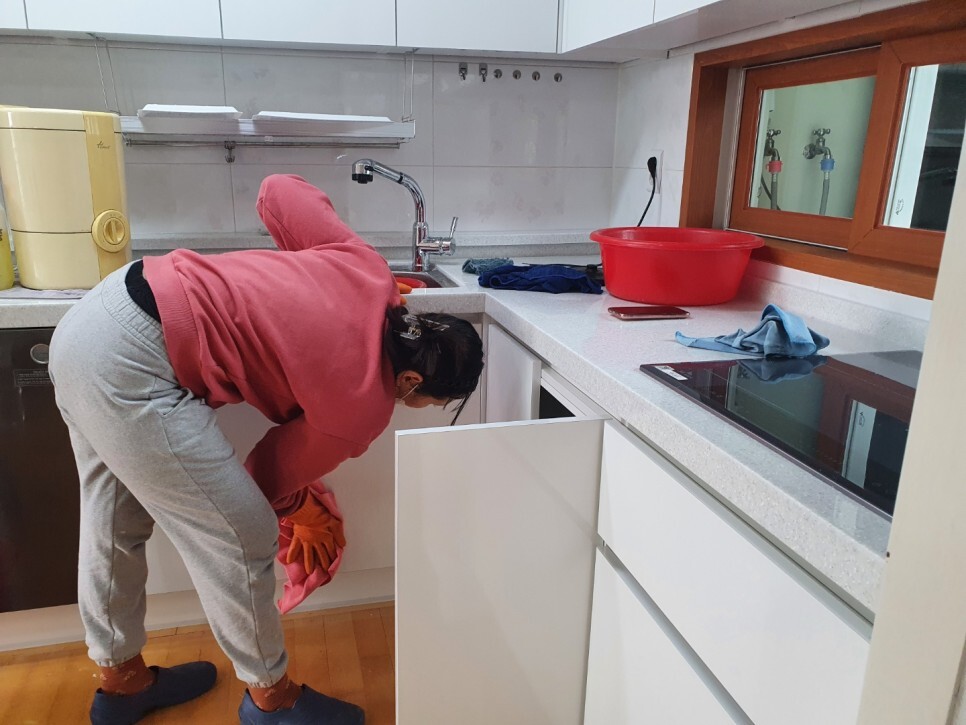 수납장은 모두 탈거하여 청소를 진행합니다.