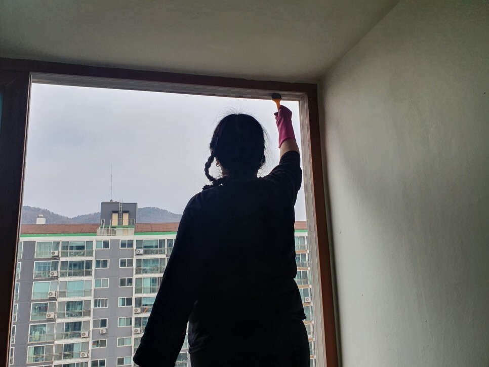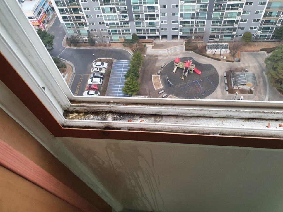 창틀에 시공잔해와 분진가루가 가득...ㅠ