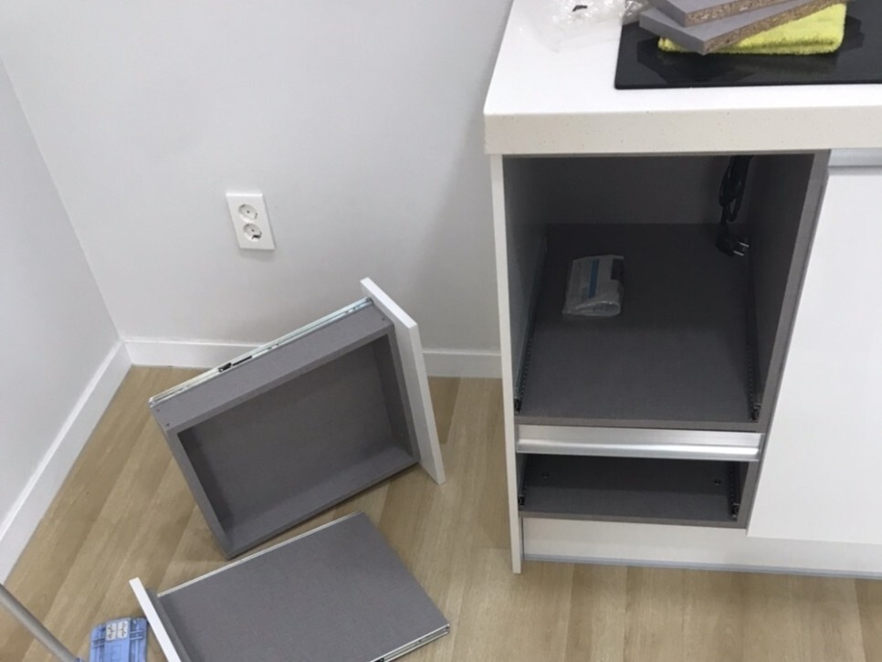 새로 시공한 수납장에는 구석구석 먼지와 톱밥이..ㅠㅠ