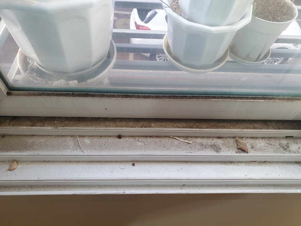 창틀과 실리콘에 곰팡이가 많아 청소전에