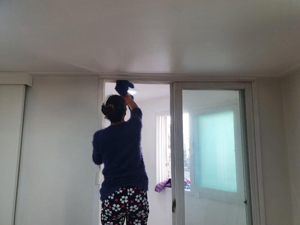 공사시에 집안 내부에서 목작업과 도장을 진행하기