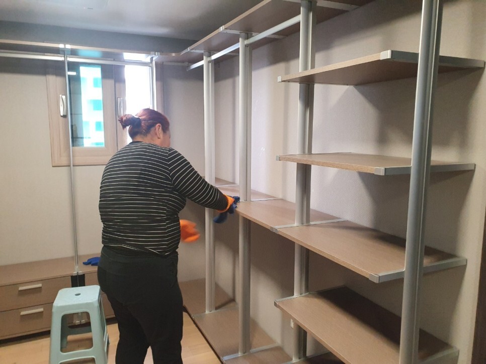 드레스룸의 선반 하나하 다 닦아내어 드리고,