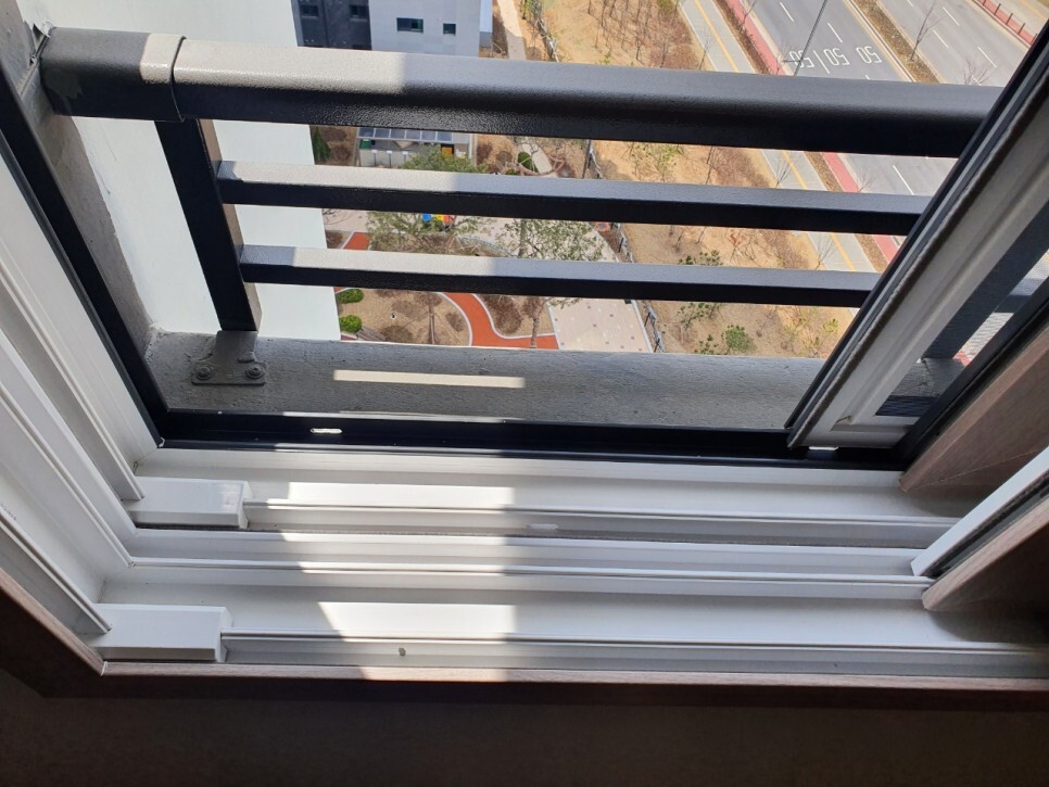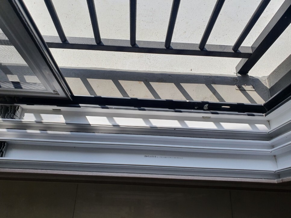 수납 안쪽과 레일에 앉은 먼지도