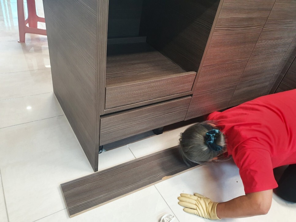 걸레받이를 떼내어 깊숙한 곳까지 깨끗하게 청소합니다.