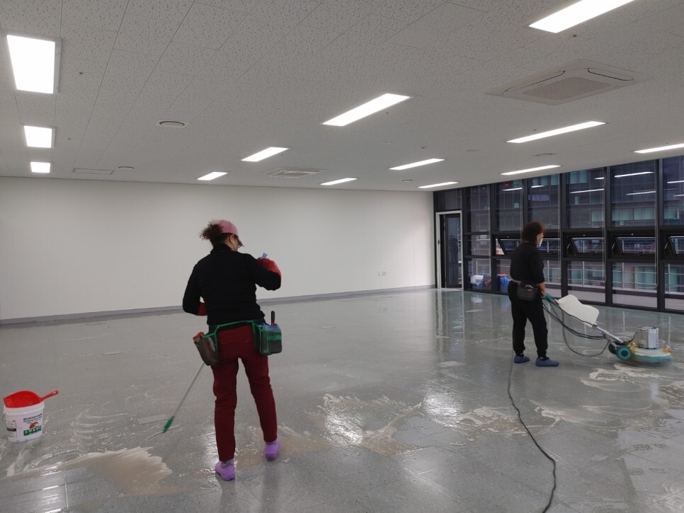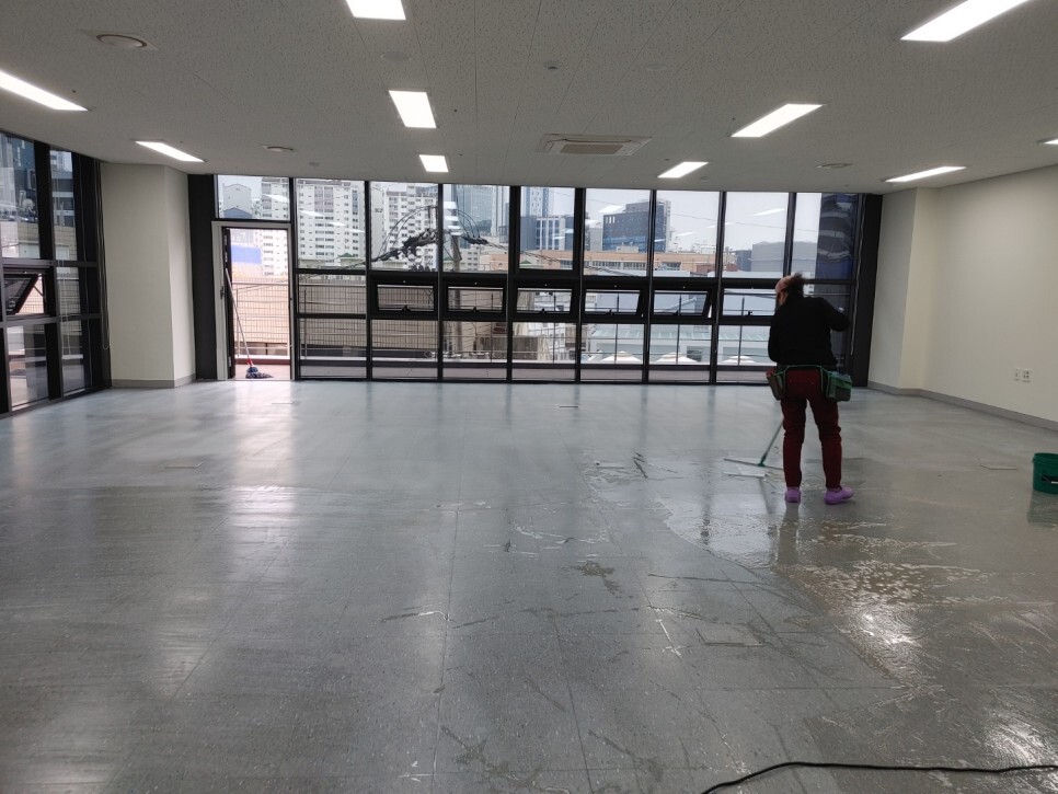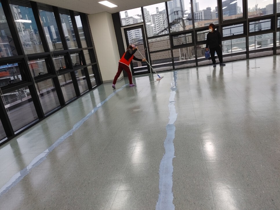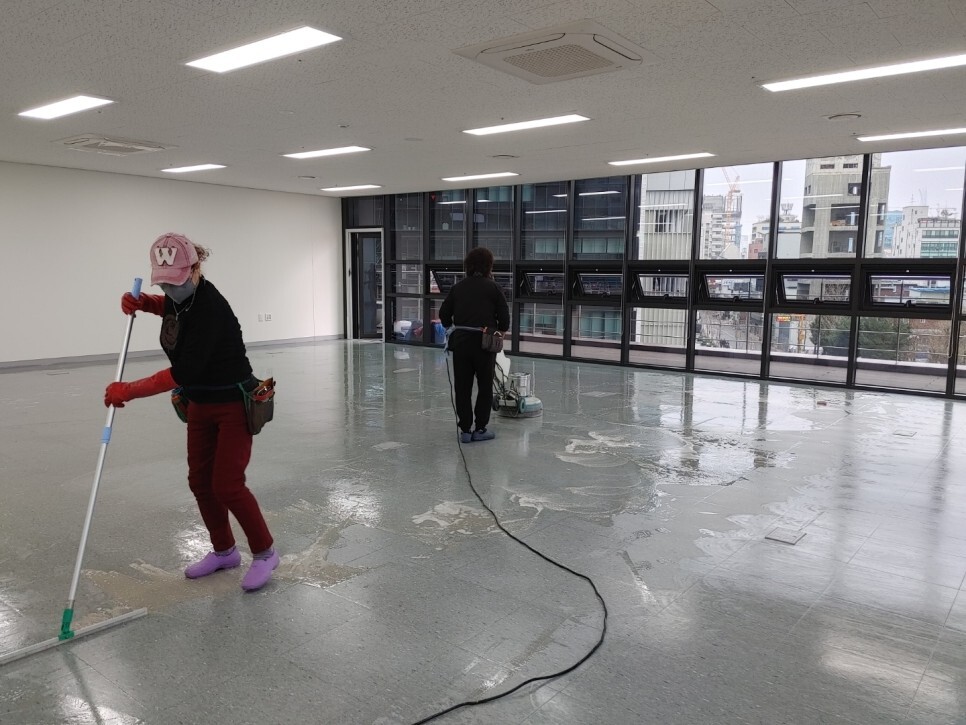 사무실 바닥 청소 및 왁스 코팅에 들어가기 앞서